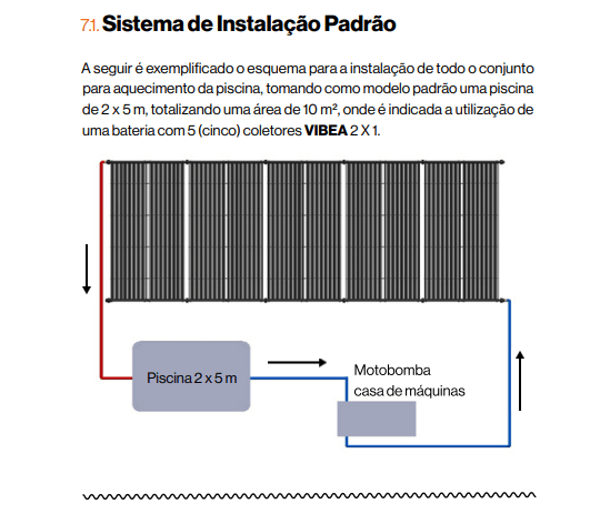 Características: Os aquecedores solares foram idealizados para estender a temporada de uso da piscina, utilizando para isso a energia solar. São responsáveis por captar a energia solar e transformá-la em energia térmica, transferindo está à água da piscina, realizando assim o aquecimento. O coletor solar para piscina, é um produto totalmente desenvolvido em polipropileno com aditivos que garantem durabilidade, resistência e total aproveitamento de uma fonte de energia renovável e não poluente, foram desenvolvidos para aquecer grandes volumes de água com o máximo de economia. Fabricado com produtos confiáveis, eficientes e principalmente pensando na preservação do meio ambiente, seja economizando energia ou utilizando materiais e processos limpos que não sejam agressivos ao meio ambiente e as pessoas. O coletor solar é fabricado com matéria-prima 100% virgem (polipropileno) e possui características únicas que são: Fácil de instalar devido ao uso de união nas pontas;