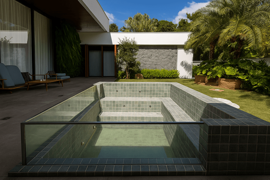 Revestimento total em pastilhas de vidro ou cerâmica da sua escolha (STRUFALDI OU ELIANE). Outros revestimentos à combinar.
